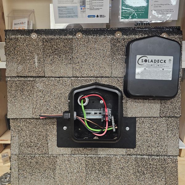 SOLADECK has been around as the leader in Solar Roof Junction Boxes for Years and they continue to grow with the industry, offering various Junction Box solutions, including deck mount and rail mount for your installations as well as din rails, terminals and weather tight weather-tight grommets & strain relief connects! Click the Tab Below and visit them On-Line and take a look at our training process in the Photo Gallery below as well!